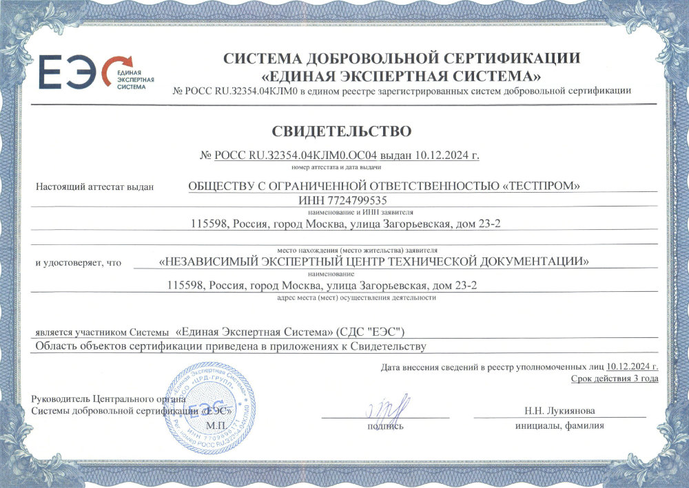 - сертификация эксплуатационных документов (РЭ, ИМ, ФО, ПС, ЭТ)