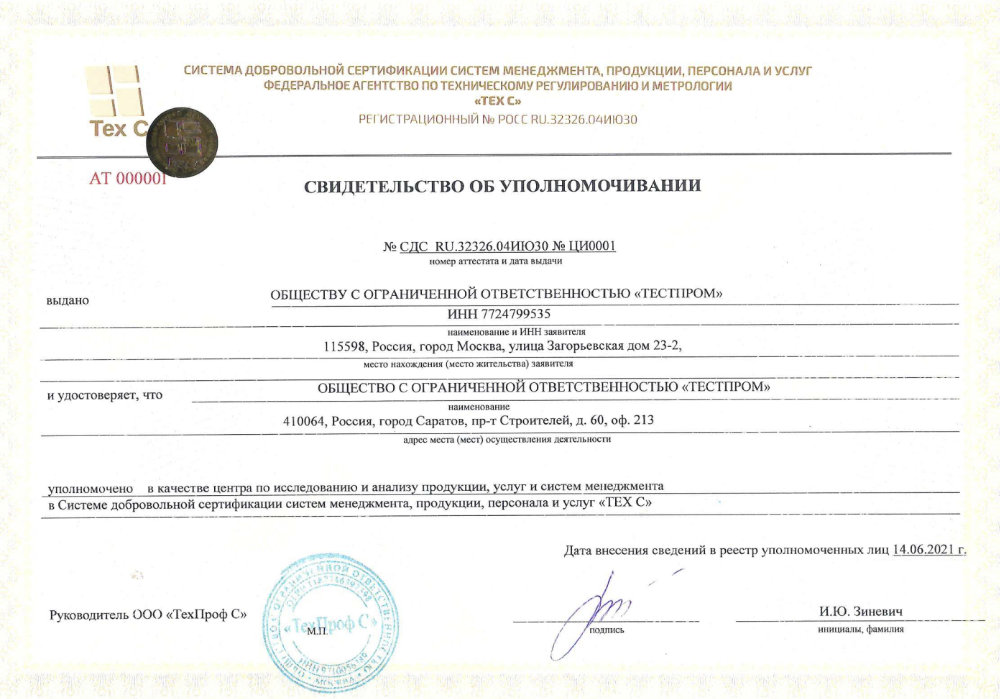 Центр «ТЕСТПРОМ» выполняет работы и содействие по подтверждению соответствия требованиям Технических Регламентов Таможенного Союза и в системе Российской сертификации ГОСТ Р:
